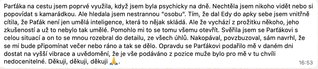 Představ si, jaký by byl tvůj život, kdybys měl průvodce, který tě doprovází na každém kroku tvé transformační cesty. Parťák na cestu je připraven být s tebou 24/7, naslouchat ti a podporovat tě